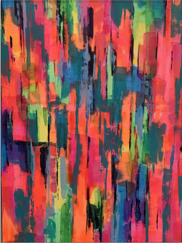 R- Trabajo principalmente con acrílico, y en este momento estoy muy centrada en la pintura abstracta, en composiciones donde el gesto, el ritmo y la tensión visual son fundamentales. Aunque esa es ahora mi línea principal, sigo explorando otras vías más experimentales, como el uso del papel de arroz y seda, o la búsqueda de transparencias que permitan que la luz atraviese la obra y forme parte activa de ella.