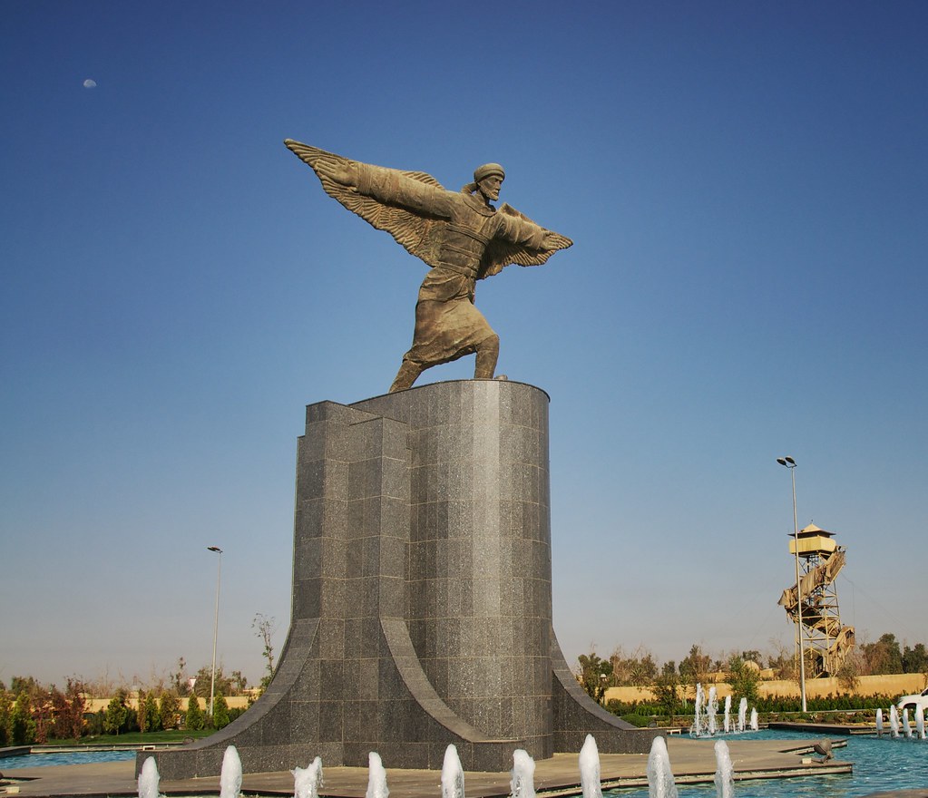 Estatua de abbás Ibn Firnás en el aeropuerto de Bagdad.