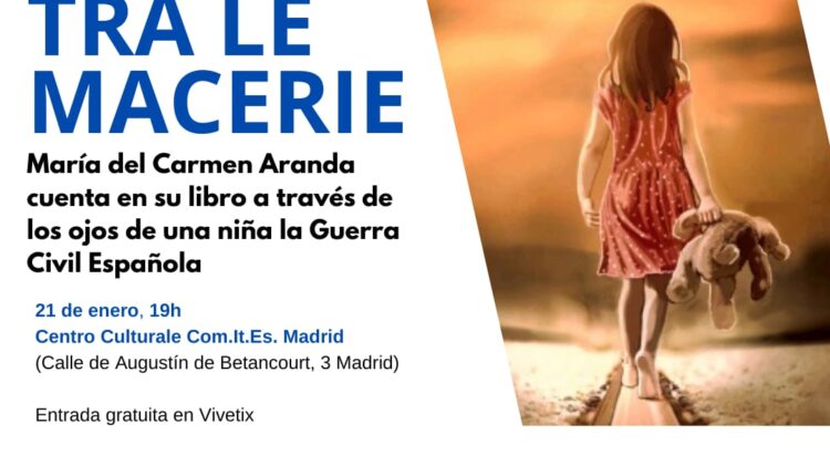 Miembros de la Academia Norteamericana de Literatura Moderna Internacional junto con la Asociación Cultural Latium y el Com.It.Es de Madrid, presentarán el libro “Fiori tra le Macerie” – “Flores entre Escombros” que recibió el Premio Distintivo a la Excelencia “Citta del Galateo” –“ Antonio De Ferraris” en Milán, de la escritora española María del Carmen Aranda.