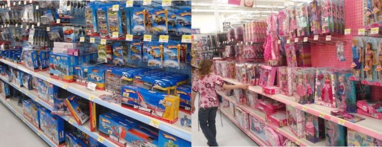Los juguetes son calco y copia de la sociedad en que vivimos. No nos deberíamos sorprender pues cuando vamos a comprar regalos y nos encontramos con secciones diferenciadas para niños y niñas.