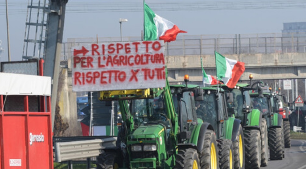 La protesta de los agricultores en Milán, los tractores avanzan hacia Roma (foto: ANSA)