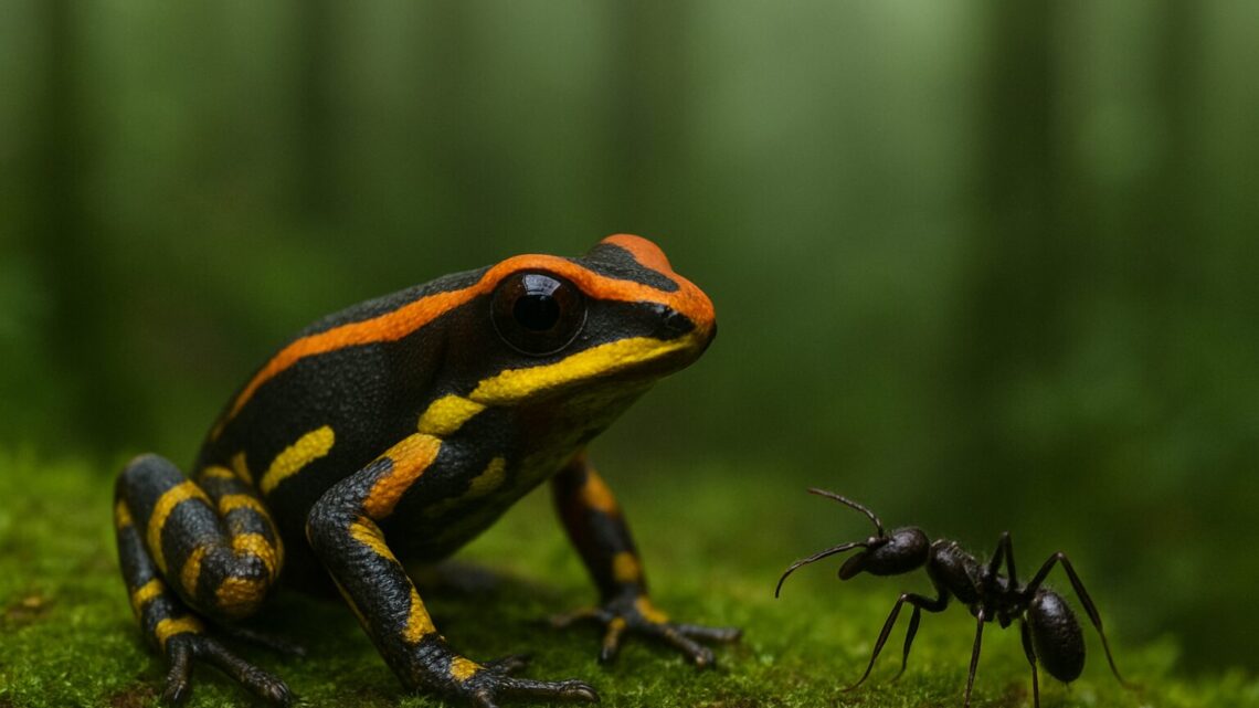 Las ranas dardo de la familia Dendrobatidae adquieren sus defensas químicas a partir de su dieta. Las especies Ameerega picta y Ameerega trivittata, presentes en la amazonía, acumulan toxinas en su piel a partir de los alcaloides que tienen sus presas, como hormigas. (Daly et al., 2009). Este tipo de defensas químicas en anfibios son modulables y las ranas pueden ajustar la liberación de sus toxinas según la amenaza, optimizando la eficiencia energética y su supervivencia (Schendel et al., 2019).
