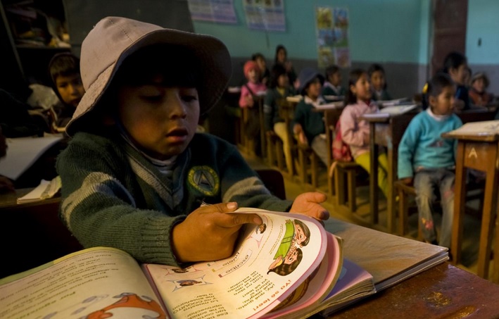 La infancia latinoamericana entre las ansias de educación y el impacto de la pobreza. Niños en una escuela de Bolivia. Foto PNUD