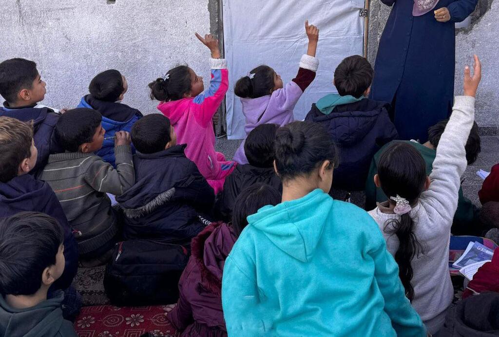 Los niños de Gaza participan en clases en un espacio de aprendizaje temporal. Foto UNRWA