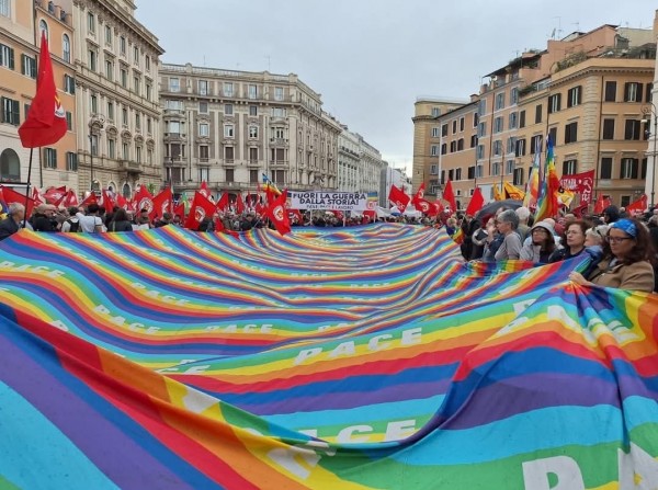 Entre las organizaciones que se dieron cita en la protesta antimilitarista de Roma se encuentra la Asociación Nacional de Partisanos de Italiana (ANPI), una de las más activas y desarrolladas en ese país (https://www.anpi.it/).