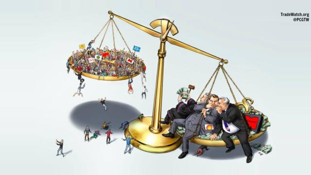 Porque realmente es sumamente injusto. Es un costoso sistema global de la llamada ‘justicia’ que solo puede ser usado por el 1% (en realidad se parece más al 0.01%). Usted o yo no podemos usar ISDS para exigir cuentas a las corporaciones cuando devastan comunidades, arruinan nuestros servicios públicos o se benefician de nuestra miseria. Es un sistema de millonarios para millonarios. Pero recuerde, ESTAMOS haciendo campaña en las Naciones Unidas para lograr un sistema que nos permita hacer que las multinacionales rindan cuentas de donde sea que sean y donde cometan abusos.